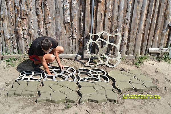 · Нова технологія, запатентована на території України. Сенс технології використання форми-трафарету знайомий всім з дитинства. Будучи маленькими, ми граючи в пісочниці пасочками, створювали химерні замки, стіни і доріжки. Розміри пасочок збільшилися, замість сипучого піску - бетон, а ось Ваша фантазія і геніальні ідеї залишилися, їх і треба задіяти при створенні дизайну Вашої майбутньої доріжки.